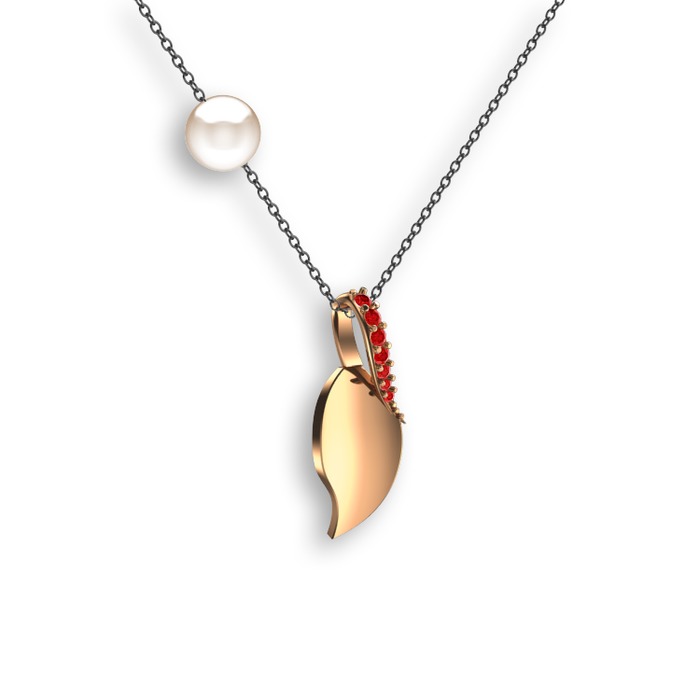 Garnet ve inci 18 ayar rose altın kolye (40 cm gümüş rolo zincir)