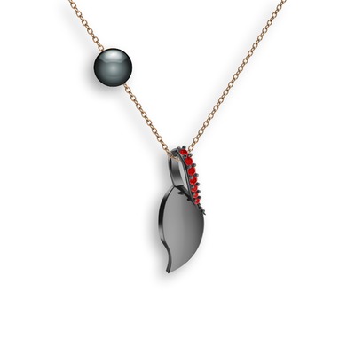 Garnet ve siyah inci 925 ayar siyah rodyum kaplama gümüş kolye (40 cm rose altın rolo zincir)