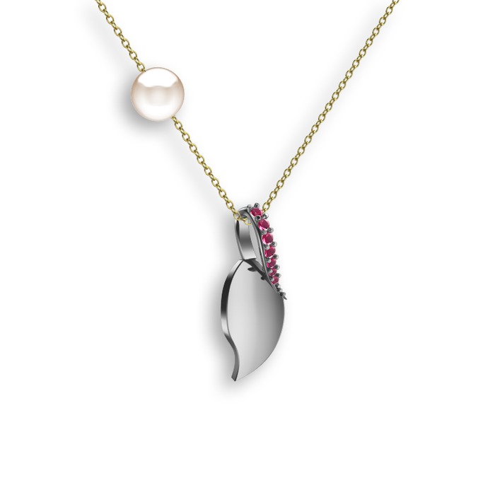 Kök yakut ve inci 18 ayar beyaz altın kolye (40 cm altın rolo zincir)