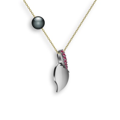 Kök yakut ve siyah inci 14 ayar beyaz altın kolye (40 cm altın rolo zincir)