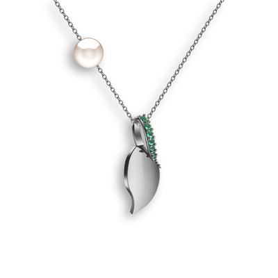 Kök zümrüt ve inci 14 ayar beyaz altın kolye (40 cm beyaz altın rolo zincir)
