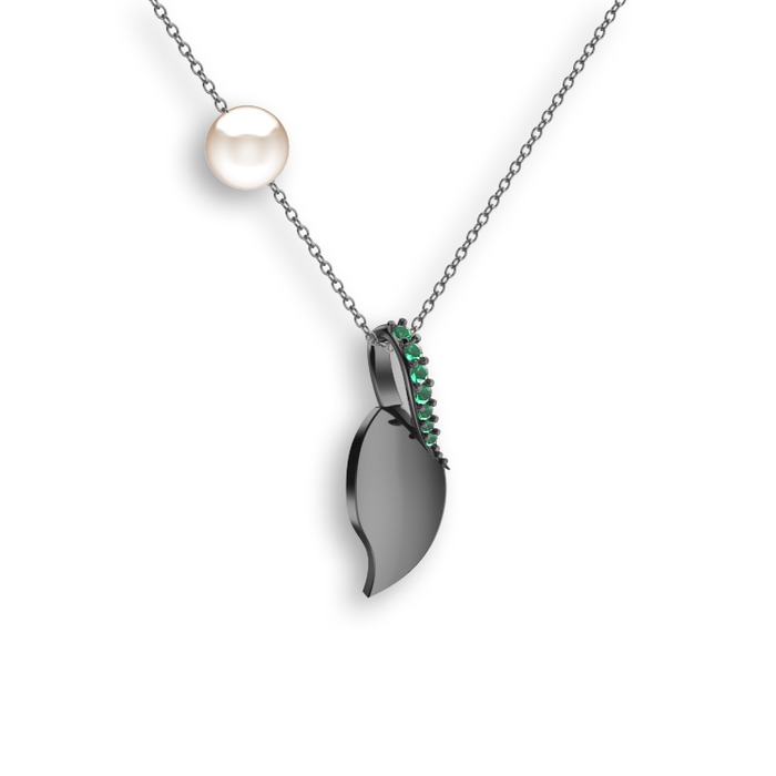 Kök zümrüt ve inci 925 ayar siyah rodyum kaplama gümüş kolye (40 cm beyaz altın rolo zincir)