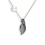Kök zümrüt ve inci 925 ayar siyah rodyum kaplama gümüş kolye (40 cm rose altın rolo zincir)