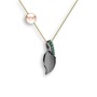 Kök zümrüt ve pembe inci 925 ayar siyah rodyum kaplama gümüş kolye (40 cm altın rolo zincir)