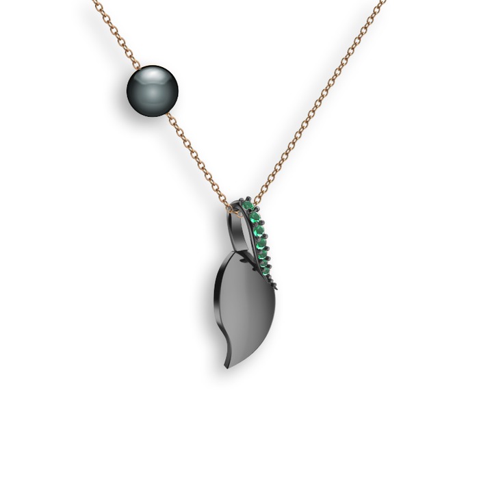 Kök zümrüt ve siyah inci 925 ayar siyah rodyum kaplama gümüş kolye (40 cm rose altın rolo zincir)
