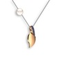 İncili Yaprak Kolye - Lab safir ve inci 8 ayar rose altın kolye (40 cm beyaz altın rolo zincir)