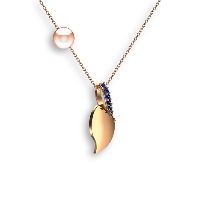 Lab safir ve pembe inci 925 ayar rose altın kaplama gümüş kolye (40 cm rose altın rolo zincir)