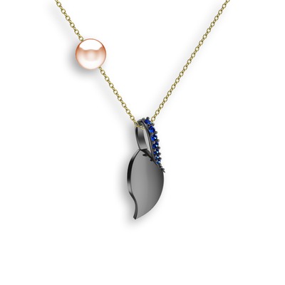 Lab safir ve pembe inci 925 ayar siyah rodyum kaplama gümüş kolye (40 cm altın rolo zincir)