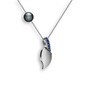 Lab safir ve siyah inci 18 ayar beyaz altın kolye (40 cm beyaz altın rolo zincir)