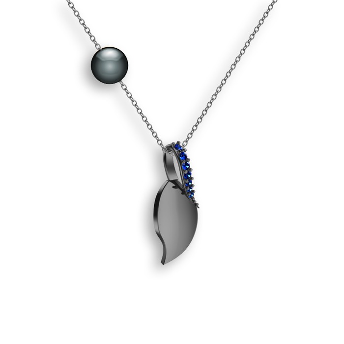 Lab safir ve siyah inci 925 ayar siyah rodyum kaplama gümüş kolye (40 cm beyaz altın rolo zincir)