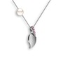 Pembe kuvars ve inci 18 ayar beyaz altın kolye (40 cm beyaz altın rolo zincir)