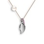 Pembe kuvars ve inci 8 ayar beyaz altın kolye (40 cm rose altın rolo zincir)