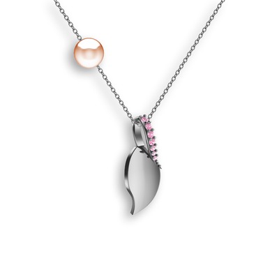 Pembe kuvars ve pembe inci 14 ayar beyaz altın kolye (40 cm beyaz altın rolo zincir)