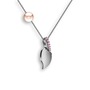 Pembe kuvars ve pembe inci 18 ayar beyaz altın kolye (40 cm gümüş rolo zincir)