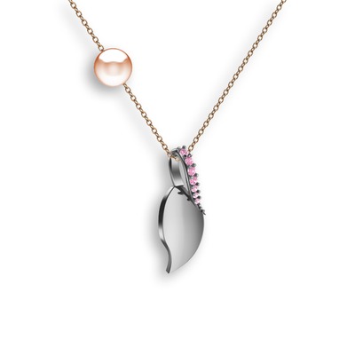 Pembe kuvars ve pembe inci 8 ayar beyaz altın kolye (40 cm rose altın rolo zincir)