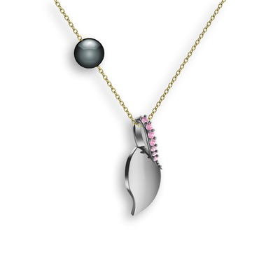 Pembe kuvars ve siyah inci 925 ayar gümüş kolye (40 cm altın rolo zincir)