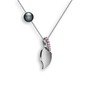 Pembe kuvars ve siyah inci 925 ayar gümüş kolye (40 cm beyaz altın rolo zincir)