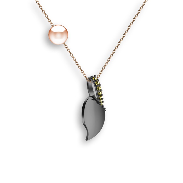 Peridot ve pembe inci 925 ayar siyah rodyum kaplama gümüş kolye (40 cm rose altın rolo zincir)