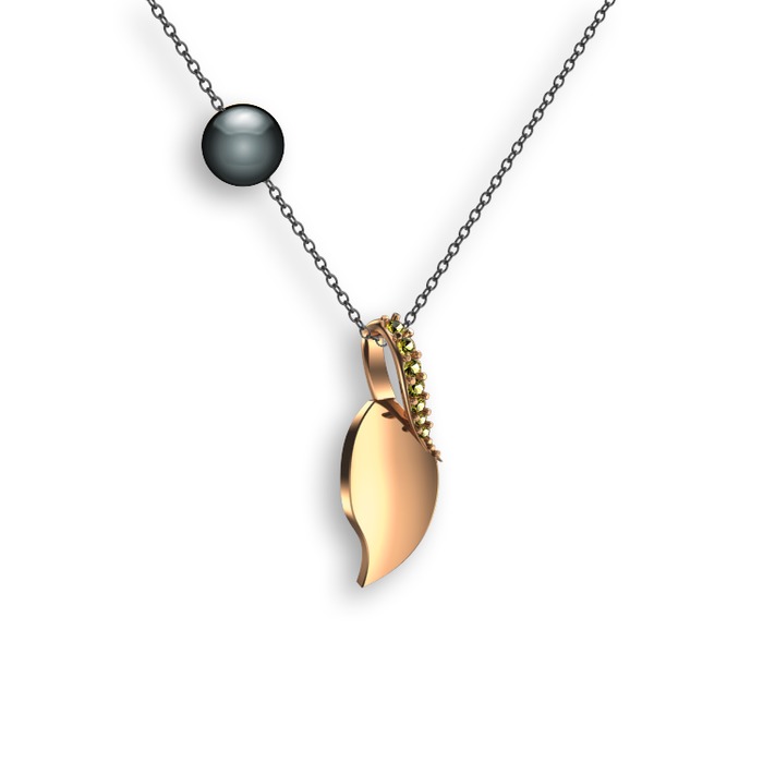 Peridot ve siyah inci 14 ayar rose altın kolye (40 cm gümüş rolo zincir)