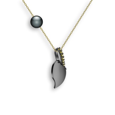 Peridot ve siyah inci 925 ayar siyah rodyum kaplama gümüş kolye (40 cm altın rolo zincir)