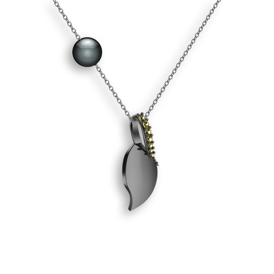 Peridot ve siyah inci 925 ayar siyah rodyum kaplama gümüş kolye (40 cm beyaz altın rolo zincir)