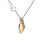Pırlanta ve inci 925 ayar rose altın kaplama gümüş kolye (0.077 karat, 40 cm gümüş rolo zincir)