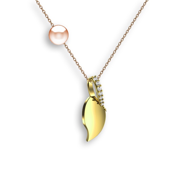 Pırlanta ve pembe inci 8 ayar altın kolye (0.077 karat, 40 cm gümüş rolo zincir)