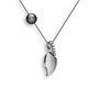 Pırlanta ve siyah inci 18 ayar beyaz altın kolye (0.077 karat, 40 cm gümüş rolo zincir)