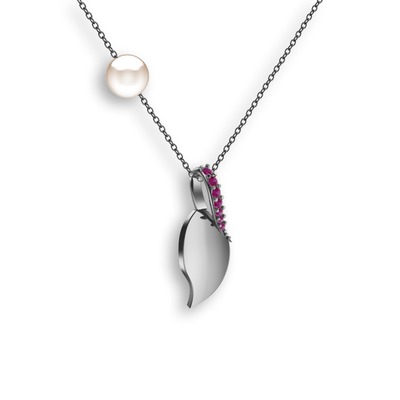 Rodolit garnet ve inci 14 ayar beyaz altın kolye (40 cm gümüş rolo zincir)