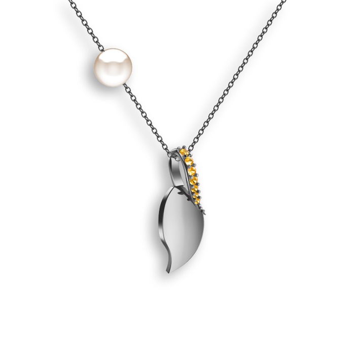 Sitrin ve inci 14 ayar beyaz altın kolye (40 cm gümüş rolo zincir)
