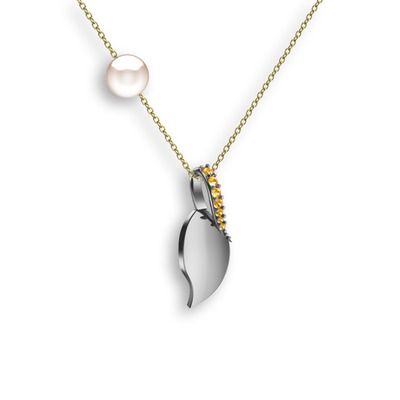 Sitrin ve inci 18 ayar beyaz altın kolye (40 cm altın rolo zincir)