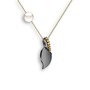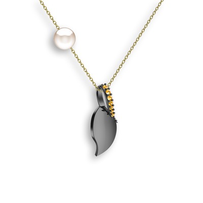 Sitrin ve inci 925 ayar siyah rodyum kaplama gümüş kolye (40 cm altın rolo zincir)