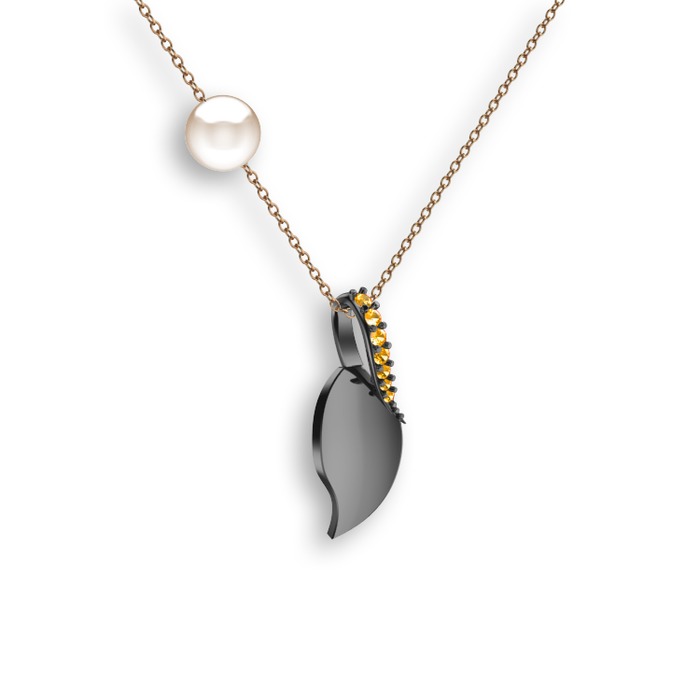 Sitrin ve inci 925 ayar siyah rodyum kaplama gümüş kolye (40 cm gümüş rolo zincir)