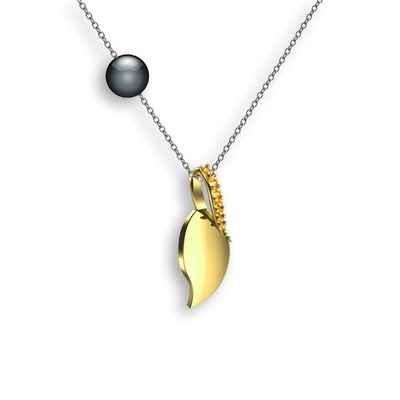 Sitrin ve siyah inci 18 ayar altın kolye (40 cm beyaz altın rolo zincir)