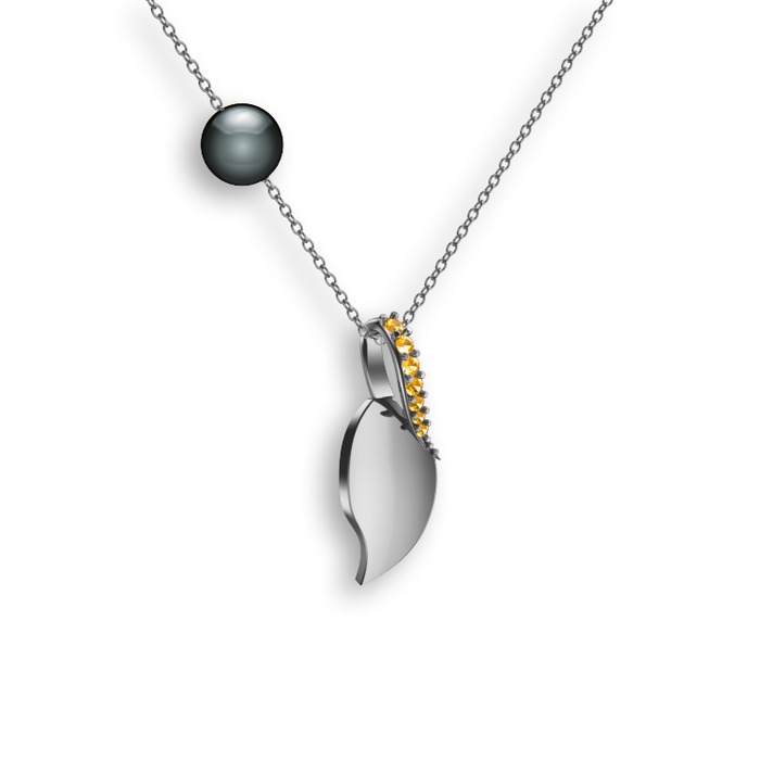 Sitrin ve siyah inci 18 ayar beyaz altın kolye (40 cm beyaz altın rolo zincir)