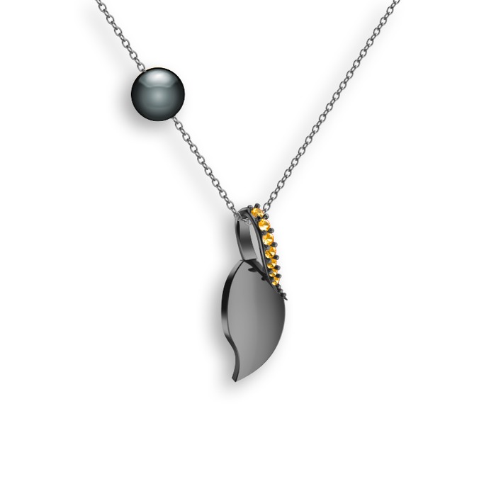 Sitrin ve siyah inci 925 ayar siyah rodyum kaplama gümüş kolye (40 cm gümüş rolo zincir)