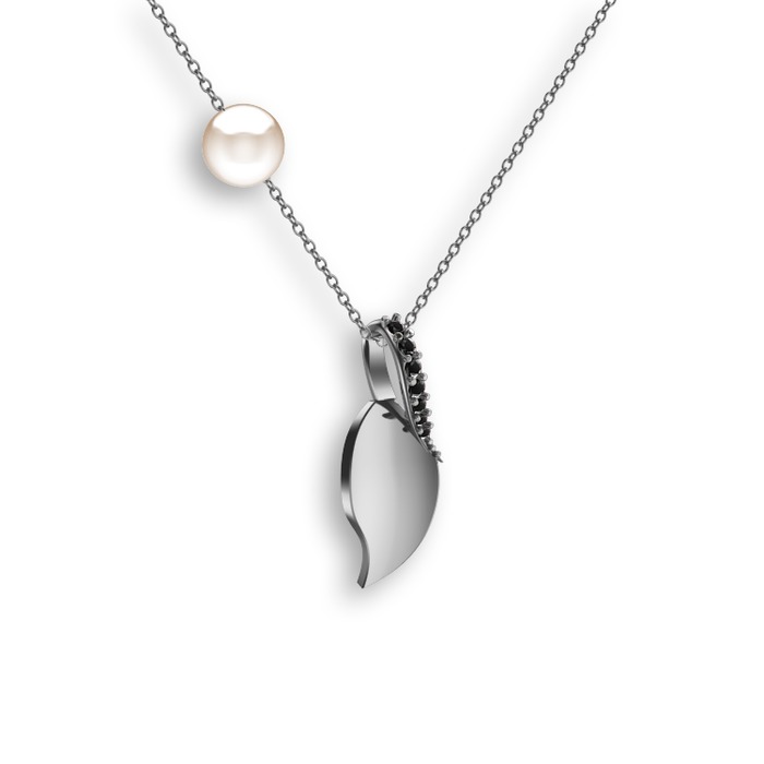 Siyah zirkon ve inci 18 ayar beyaz altın kolye (40 cm beyaz altın rolo zincir)