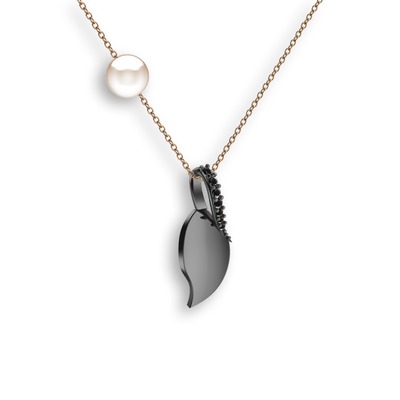 Siyah zirkon ve inci 925 ayar siyah rodyum kaplama gümüş kolye (40 cm rose altın rolo zincir)