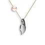Siyah zirkon ve pembe inci 14 ayar beyaz altın kolye (40 cm gümüş rolo zincir)