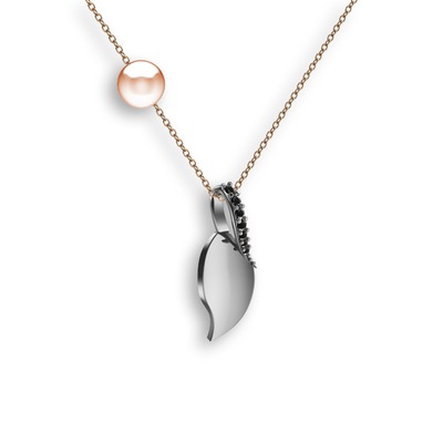 Siyah zirkon ve pembe inci 8 ayar beyaz altın kolye (40 cm rose altın rolo zincir)