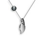Siyah zirkon ve siyah inci 8 ayar beyaz altın kolye (40 cm beyaz altın rolo zincir)
