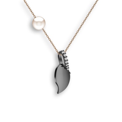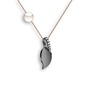 Swarovski ve inci 925 ayar siyah rodyum kaplama gümüş kolye (40 cm rose altın rolo zincir)