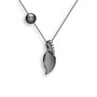 Swarovski ve siyah inci 925 ayar siyah rodyum kaplama gümüş kolye (40 cm gümüş rolo zincir)