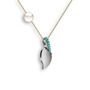 Yeşil kuvars ve inci 14 ayar beyaz altın kolye (40 cm altın rolo zincir)