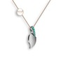 Yeşil kuvars ve inci 14 ayar beyaz altın kolye (40 cm gümüş rolo zincir)