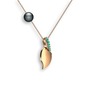 Yeşil kuvars ve siyah inci 925 ayar rose altın kaplama gümüş kolye (40 cm rose altın rolo zincir)