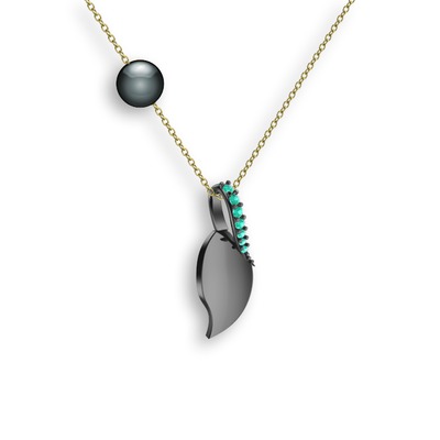 Yeşil kuvars ve siyah inci 925 ayar siyah rodyum kaplama gümüş kolye (40 cm altın rolo zincir)