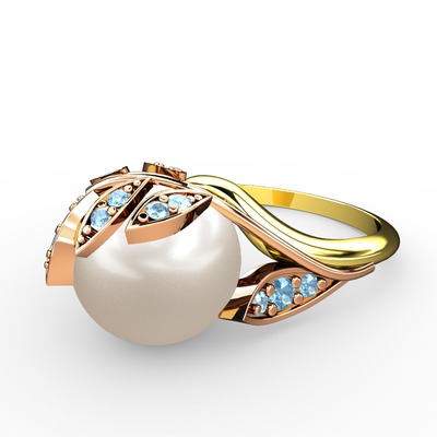 Inci ve akuamarin 18 ayar rose altın yüzük