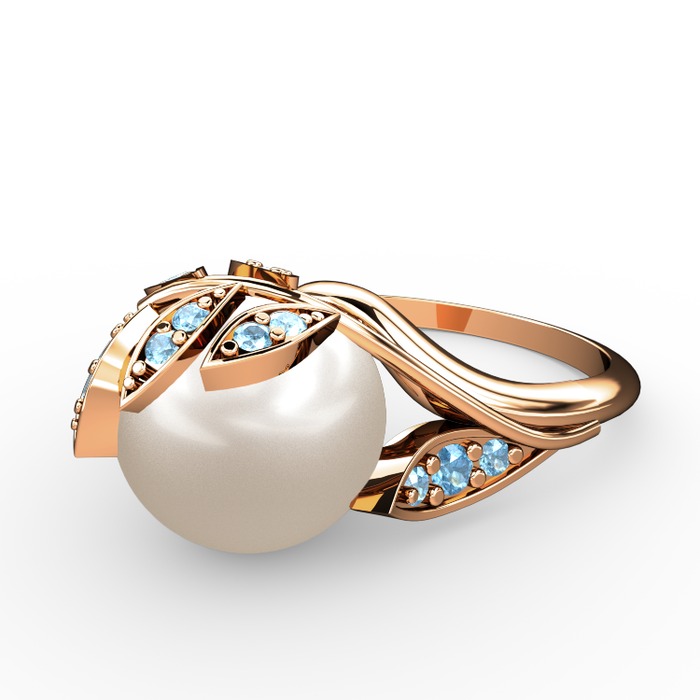Inci ve akuamarin 18 ayar rose altın yüzük