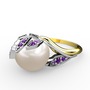 Inci ve ametist 14 ayar beyaz altın yüzük